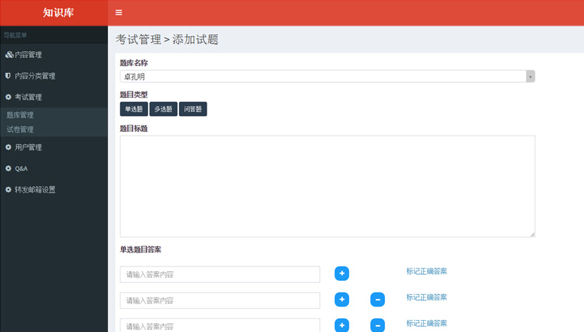 • 考試管理:    管理微信端的答題試卷和題庫信息